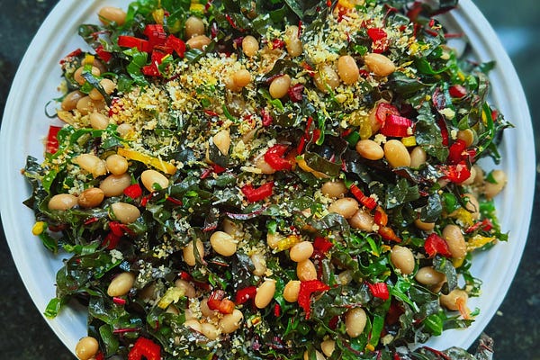 Perfect salads for eating in your dark winter man cave—or woman cave. White beans and chard. Potato and salami. Plus: Let's put crunchy lemon Parmesan…