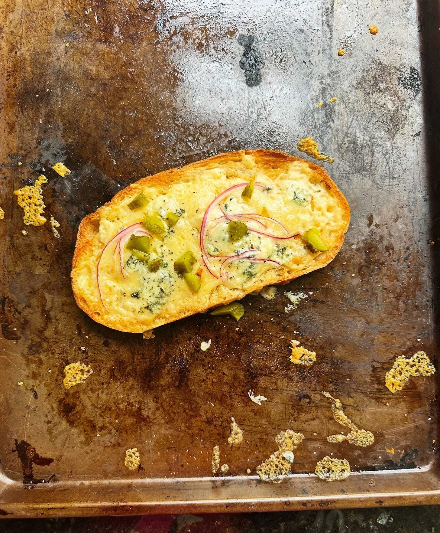 The perfect meal—my chunky potato soup with leeks and onions; a cold, lemony, crunchy baby gem salad; cheddar and blue cheese toasts. Don’t go out. Stay home. It’s better.