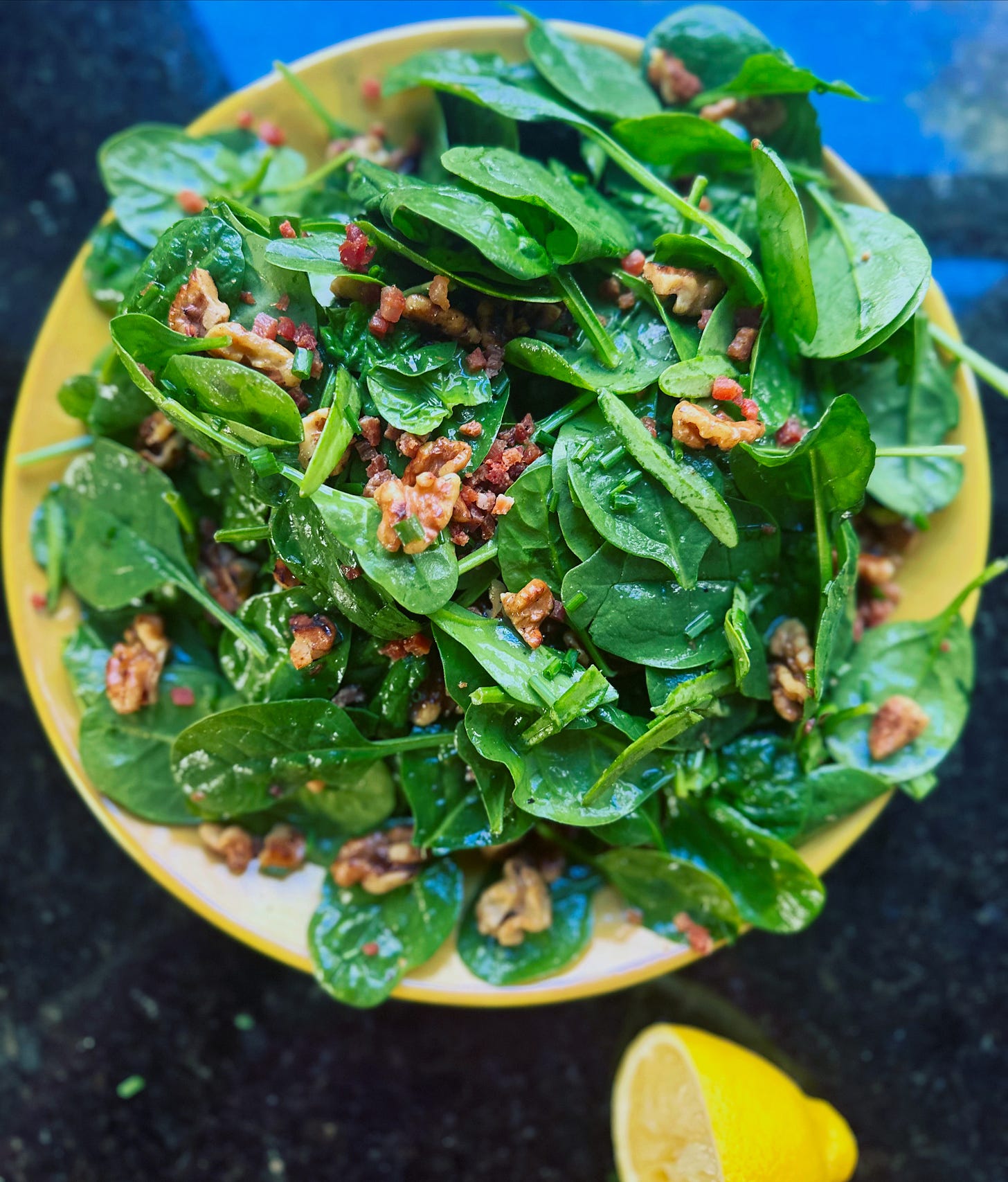 This is not sustainable, I whispered to myself. And then I watched, decade after decade, as the spinach salad became a bedazzled, cartoonish floozy. They added canned mandarin oranges and candied pecans and pushed it onstage. And sometimes blue cheese—or any kind of cheese, including that stuff from a bag. And the dressing got sweeter and sweeter as the years went by, until it tasted like liquid fudge.